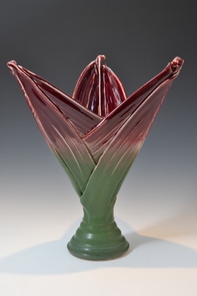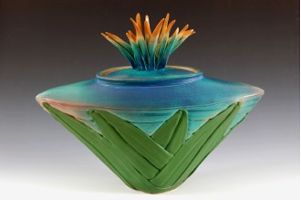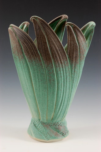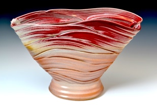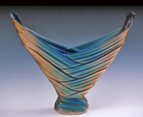 My work embodies a direct relationship between naturally-occurring pattern and a personal involvement with ceramic forms and surface. The layering of plant leaves, the texture of cloud formations, and occurrences such as eroded rock surfaces describe a rich and varied array of texture that lends itself to interpretation in clay. Pattern, created by the layering of thrown clay strips in the formation of the ceramic vessel, refers directly to such phenomena while allowing for personal expression.